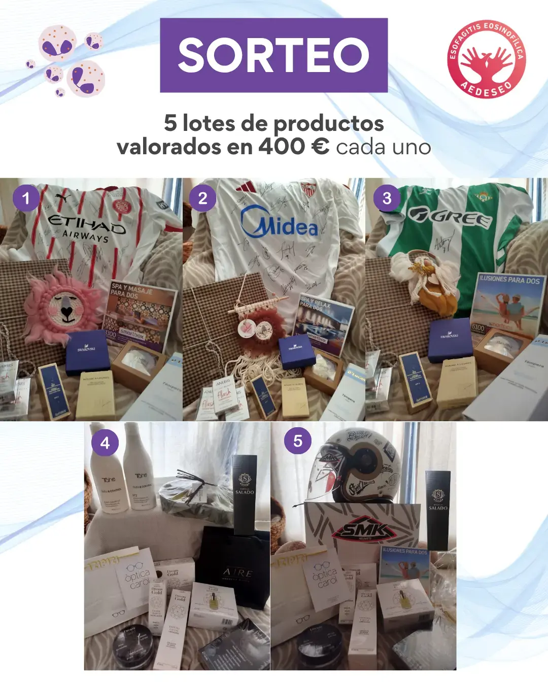 El pasado lunes, 3 de noviembre, se celebró en directo el sorteo de los cinco lotes de productos donados por los colaboradores del V Congreso Nacional de Esofagitis Eosinofílica.